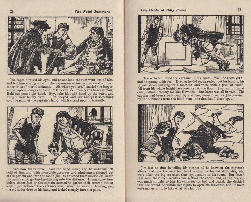 Dudley Watkins (famous for the Beano and Dandy’s Desperate Dan, Lord Snooty, and others) drew adaptations of several classic novels read by children down the years. For instance, Treasure Island, Oliver Twist, Robinson Crusoe, and Kidnapped. Originally appearing in Peoples Journal the stories were later collected into book form and published in the 1950s.